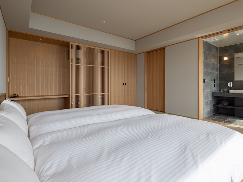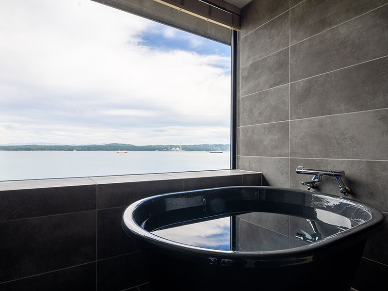 穏やかな七尾湾を眺めながらバスタイムを楽しむことのできるお部屋。エキストラベッドの追加で3名様のご利用にも対応させていただきます。