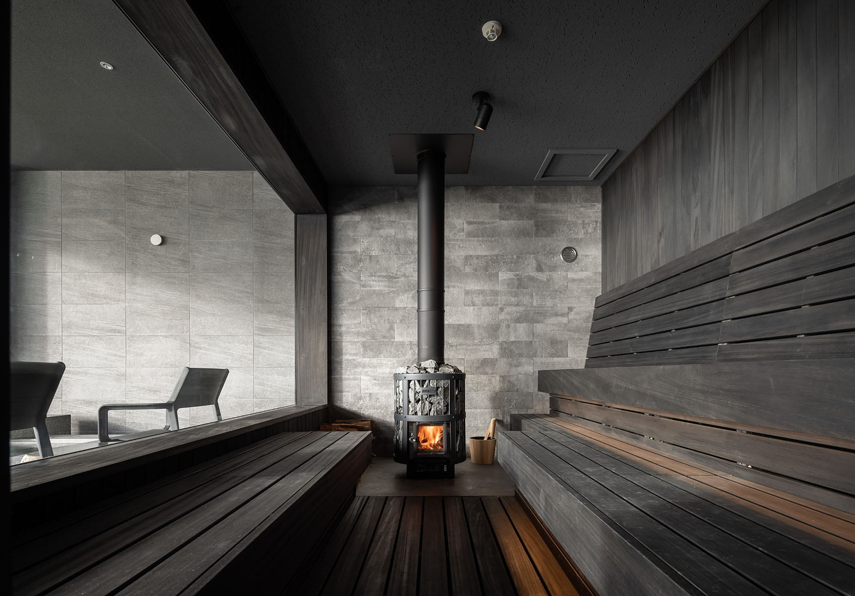 客室内に専用サウナを備え、